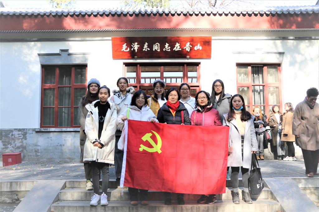 师生在这里参观了“毛泽东在双清”展以及国家早期领导人的旧居陈设,并在“毛泽东同志在香山”纪念馆前合影留念。