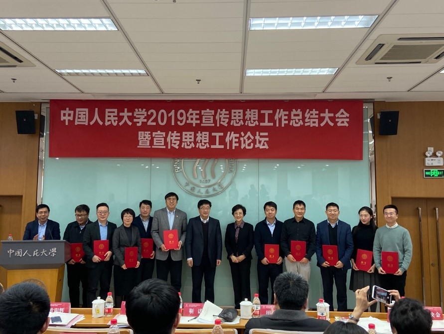 2019年12月24日下午两点半,中国人民大学2019年宣传思想工作总结大会暨宣传思想工作论坛在逸夫第二报告厅举行。学校党委书记靳诺、校长刘伟出席会议,重要媒体和理论报刊负责人、理论专家、各六合宝典旧版 (系)、机关部处及直(附)属单位主要负责人及宣传员参加。会议由学校党委副书记、党委宣传部部长郑水泉主持。