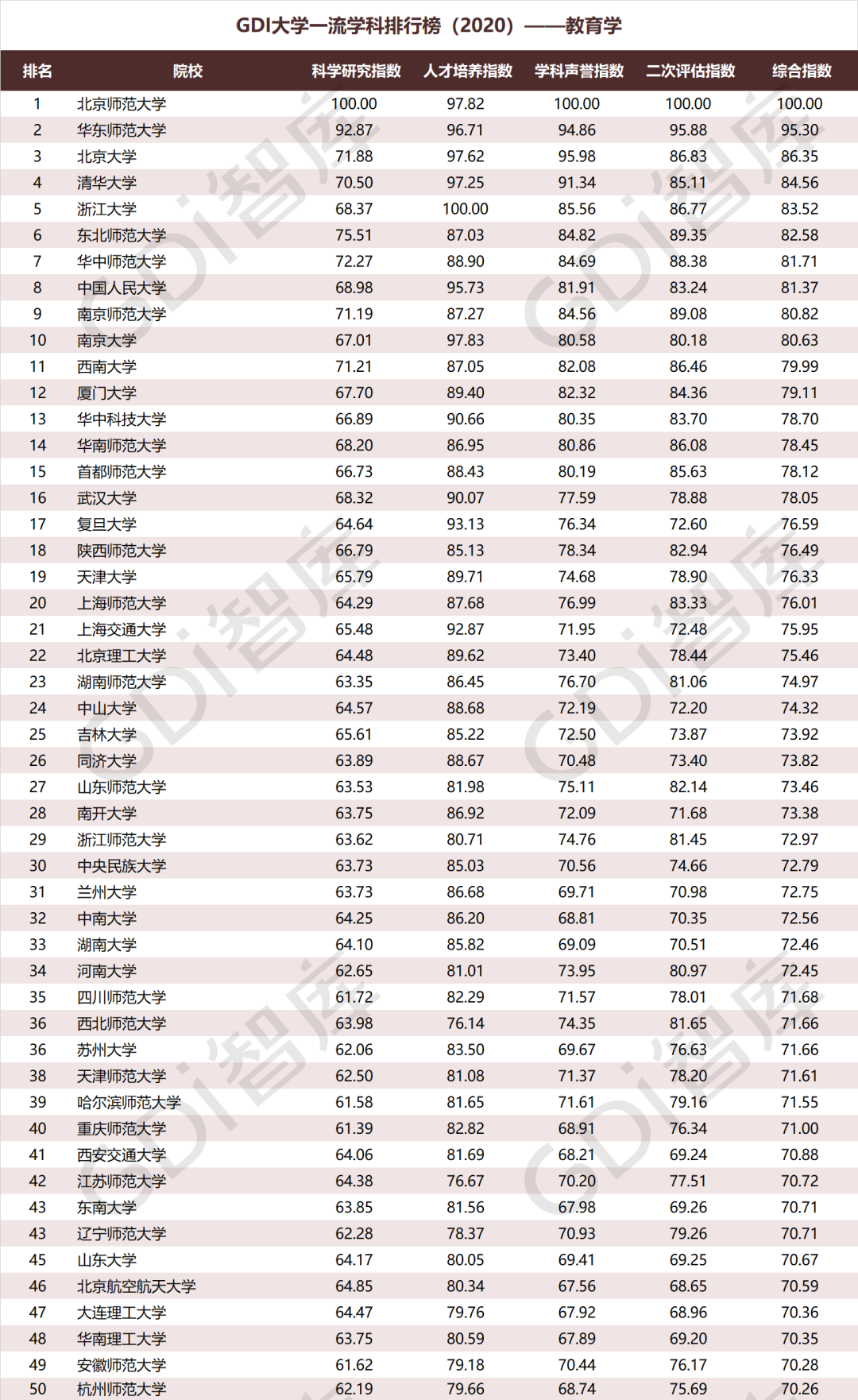 2020年6月15日,广州日报数据和数字化研究院(GDI智库)发布了“GDI大学一流学科排行榜(2020)”(以下简称“2020学科榜”),其中,中国人民大学教育学排名全国第8位,较去年上升6位。2019年我校教育学排名第14位。