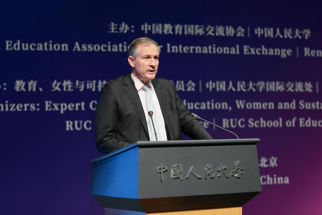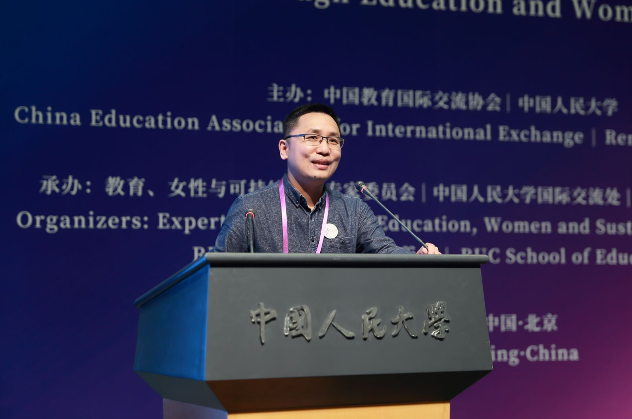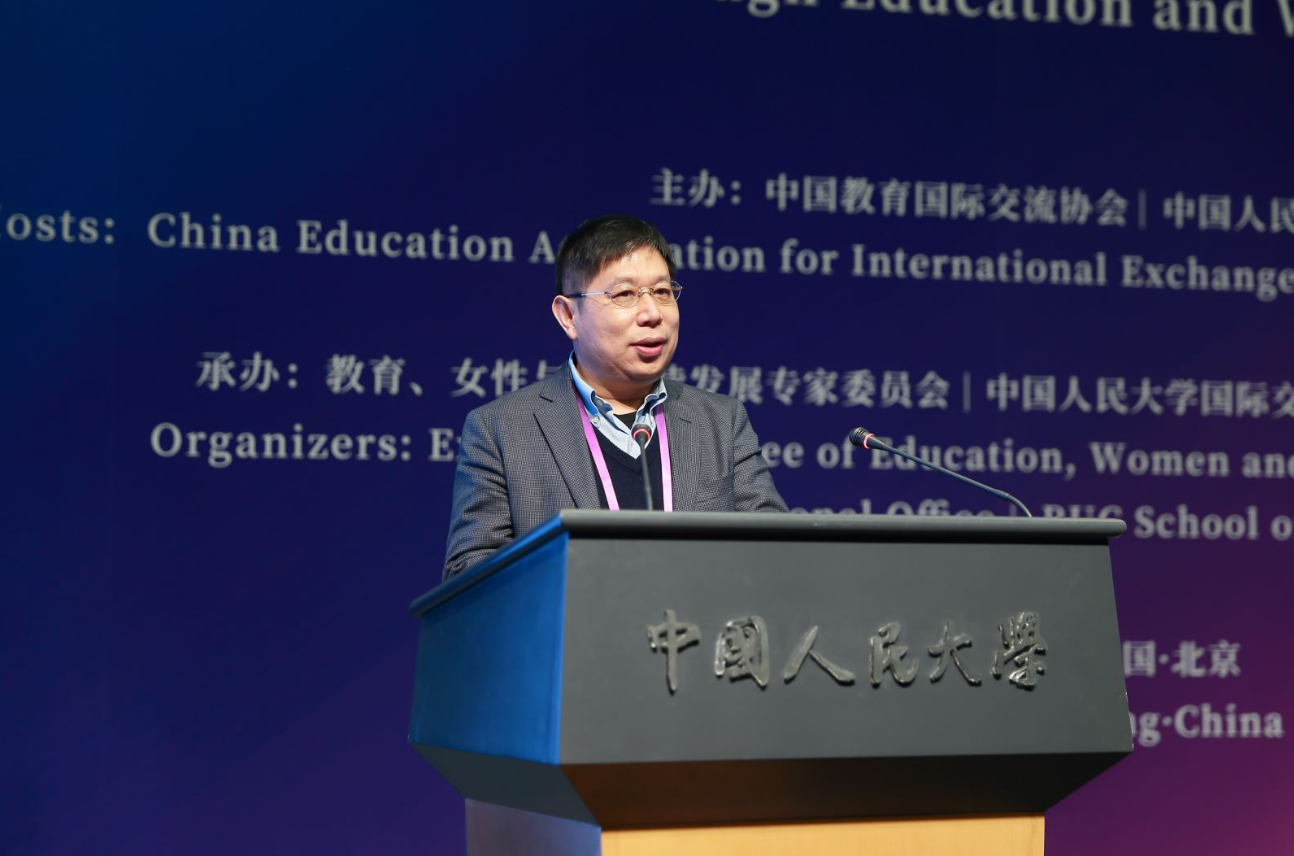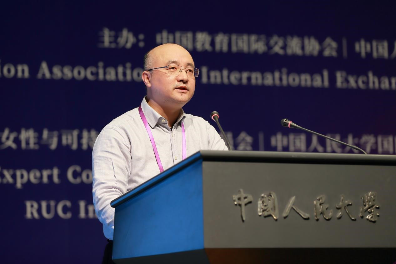 郭中代表国际救助儿童会(英国)北京代表处致辞,他介绍了国际救助儿童会在推动儿童发展相关的项目情况,表示愿意和中国教育国际交流协会、中国人民大学和其他共同关注女性发展的各个机构共同努力,倾听女性和女童心声,保障妇女权利,创造女性追求梦想和实现自我发展的机会。