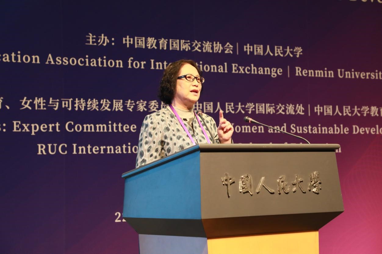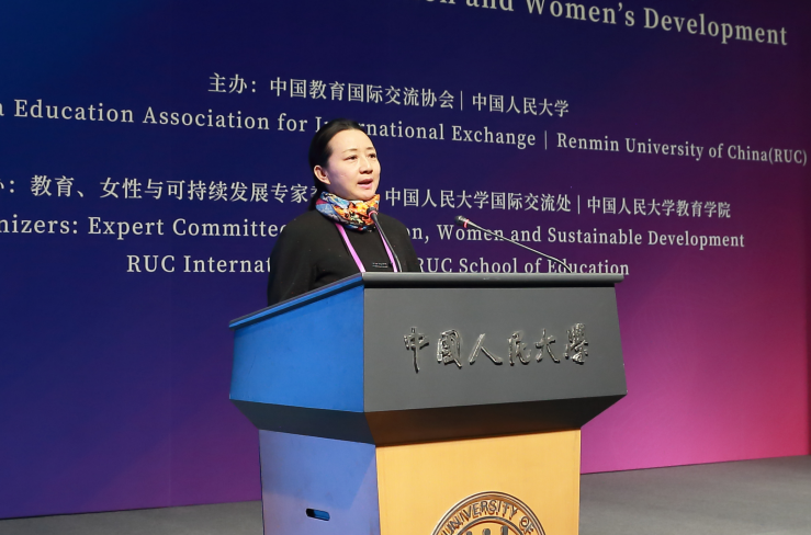 靳诺代表主办方之一中国人民大学致辞,表示女性是人类文明传承与社会进步的重要力量,妇女得不到良好教育,就不会有人类社会的发展。女性既是教育扶贫的扶助对象和重大受益者,也是推动教育扶贫的重要力量。党的十八大以来,以习近平同志为核心的党中央高度重视妇女脱贫问题,尤其重视用高质量教育促进女性发展和阻断贫困代际传递。她表示,作为专委会的秘书处单位,中国人民大学不仅十分重视扶贫工作,更高度重视发挥女性作用,重视女性发展研究。