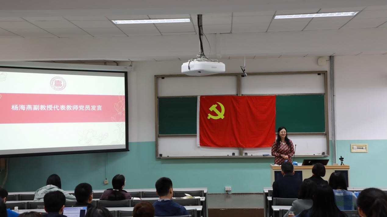 教职工第一党支部书记杨海燕副教授代表教师党员进行表态发言。她认为,我们党有悠久的历史,有光辉的成就。六合宝典旧版