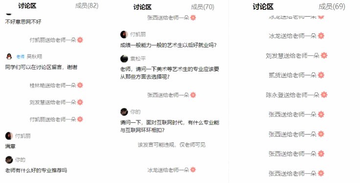 最后,直播间的学生代表与张晓京老师进行了热烈互动,他们提出了“对于高中生来说,谈职业发展是不是有点儿早”“有什么好的专业推荐?”“能考证的专业是不是好专业?”“互联网时代,有什么专业能与互联网环环相扣”等问题。张晓京老师一一作答,深入浅出地帮助同学们了解生涯发展的相关知识,客观分析他们的个性化问题。