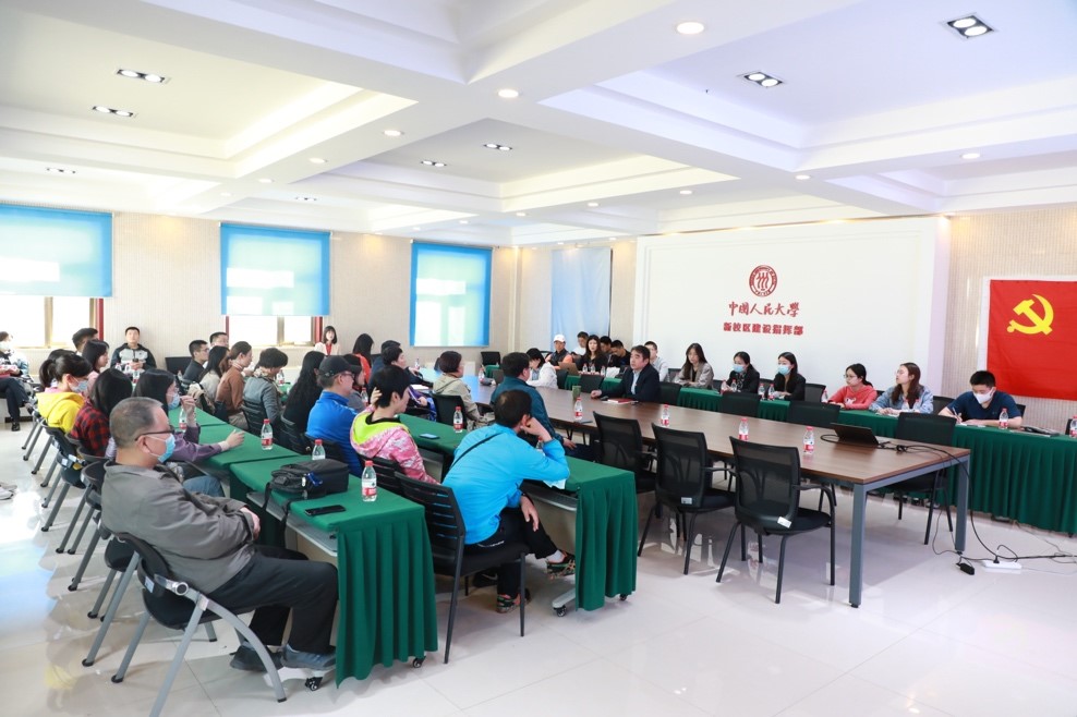 王甫银领学了习近平总书记关于京津冀协同发展、北京城市副中心建设的重要论述精神,系统、全面地介绍了通州新校区、北京城市副中心的规划建设情况。王甫银表示,建设中国人民大学通州新校区,是学校“双一流”建设的重要支撑、中国高等教育综合改革的重要部署、北京城市副中心建设的重要组成、疏解北京非首都功能的重要举措和国家京津冀协同发展战略的重要体现。通过图片展示和视频播放等方式,王甫银介绍了通州新校区的整体规划、建设理念、建筑过程和周边区域规划建设情况,讲述了通州新校区建设指挥部克服建设困难和挑战所付出的种种努力,并结合校史重温了中国人民大学校区的演变过程。