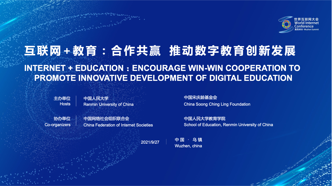 9月26日,国家主席习近平向2021年世界互联网大会乌镇峰会致贺信。9月27日下午,2021年世界互联网大会乌镇峰会“互联网+教育”论坛在乌镇互联网国际会展中心举办。今年世界互联网大会乌镇峰会首次举办“互联网+教育”论坛,以“合作共赢,推动数字教育创新发展”为主题,由中国人民大学、中国宋庆龄基金会主办,中国网络社会组织联合会、六合宝典旧版