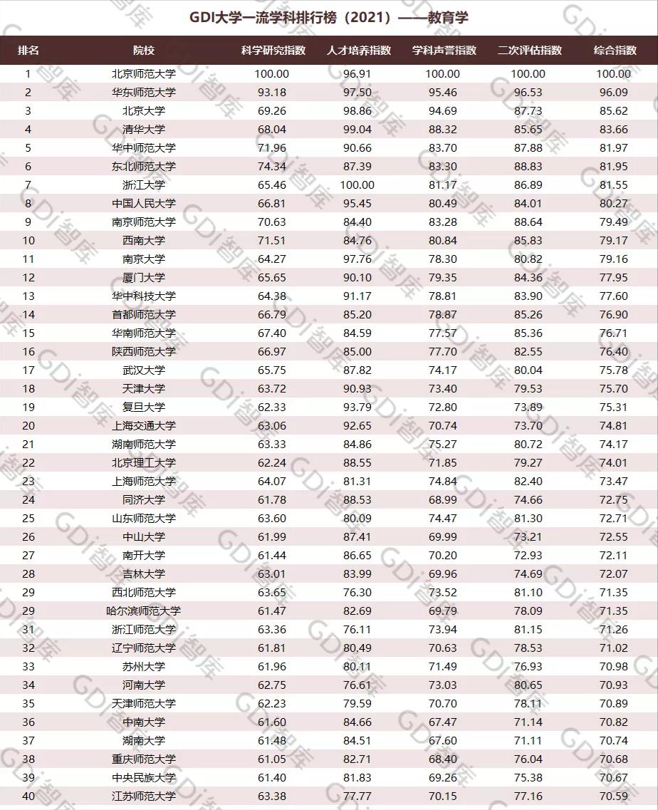 今年6月,GDI智库发布“2021年GDI大学一流学科排行榜”,中国人民大学教育学学科位居全国第8位,延续了2020年排名,稳居全国前十,反映了近年来我校教育学学科发展取得的积极进展和重要成就。