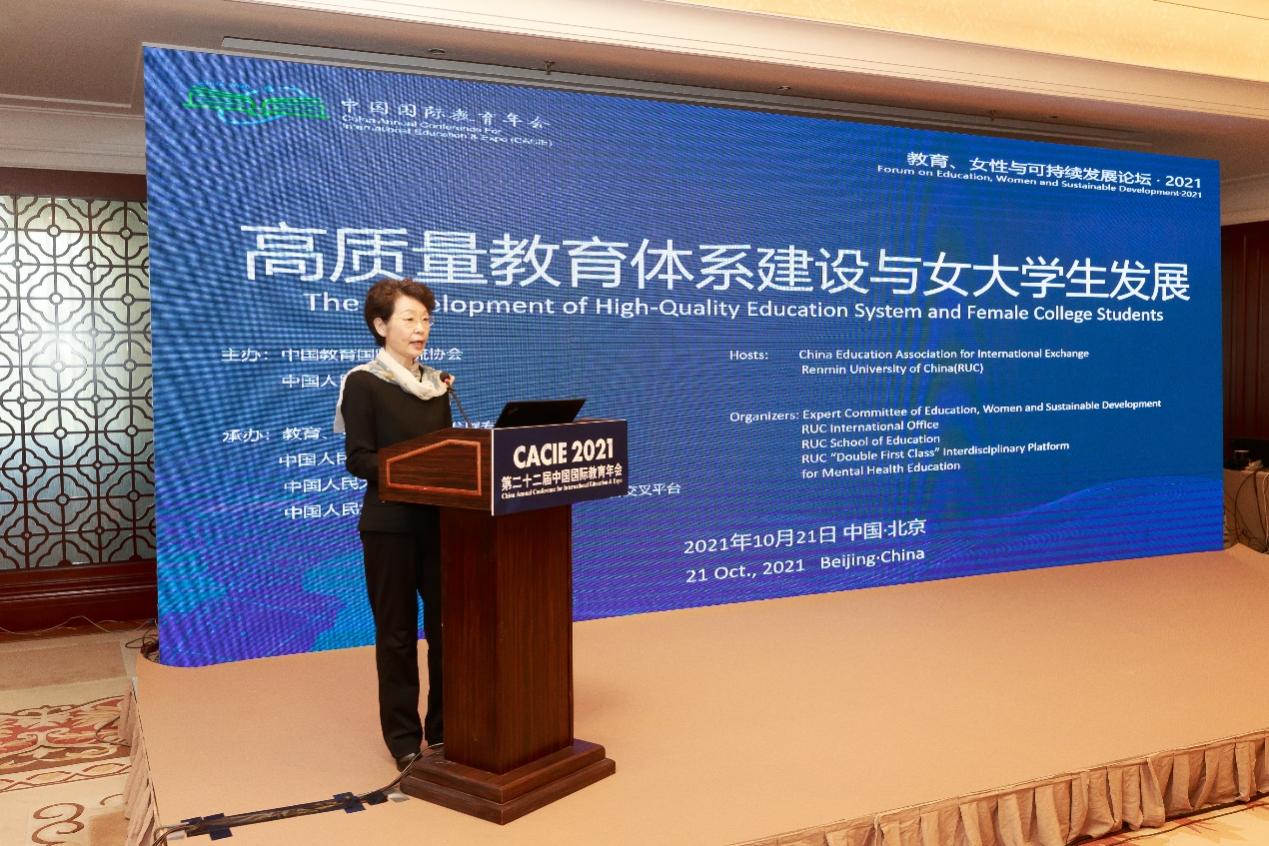 为健全人才培养体制机制,发挥教育在培养正确社会性别观方面的作用,助力高质量教育体系建设,推动“十四五”时期教育发展,教育、女性与可持续发展论坛2021暨高质量教育体系建设与女大学生发展专题研讨会于2021年10月21日上午九点在北京国际会议中心召开。论坛由中国教育国际交流协会、中国人民大学主办,我院与教育、女性与可持续发展专家委员会、国际交流处、“双一流”心理健康教育跨学科交叉平台共同承办。