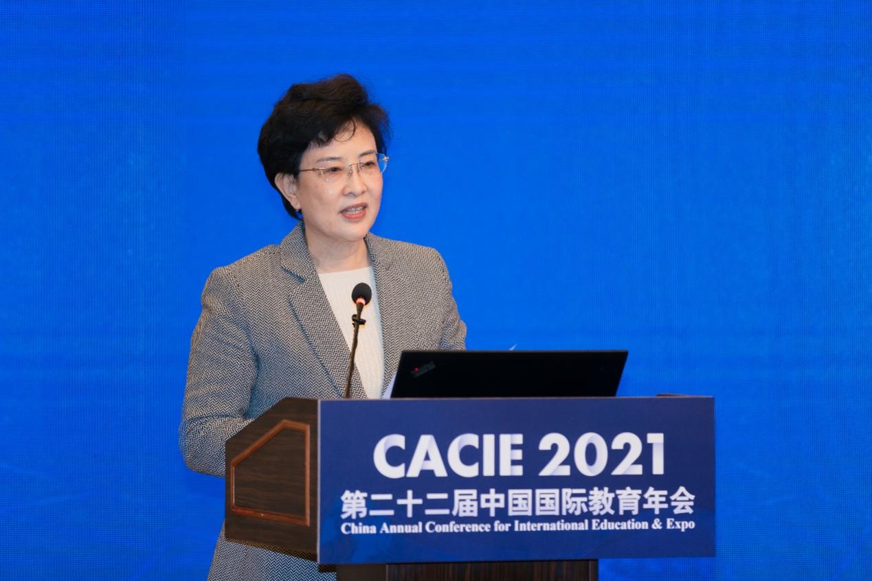 靳诺代表主办方之一中国人民大学在致辞中表示,在“十四五”时期建设高质量教育体系,为中国新时代教育改革发展确立了坐标方位,是对新发展阶段教育工作做出的新部署,也为女性教育发展提出了基本遵循和目标要求。一直以来,党和国家始终高度重视促进性别平等和妇女事业发展,始终把高等教育赋能女性发展摆在重要位置,始终关心和支持女大学生的成长和发展。高等教育需要将促进男女平等事业的发展同推进立德树人根本任务的落实紧密结合在一起,以理论创新、制度创新、文化创新、教育创新促进女大学生全面发展,为女大学生成长成才、就业创业搭建平台、创造机会、提供保障。她表示,作为“教育、女性与可持续发展专家委员会”秘书处所在单位,中国人民大学将持续与中国教育国际交流协会及热心支持女性教育的各机构一道推进男女平等的伟大事业,书写女大学生全面发展的精彩篇章,汇聚“她力量”,分享“她智慧”,创造“她业绩”。