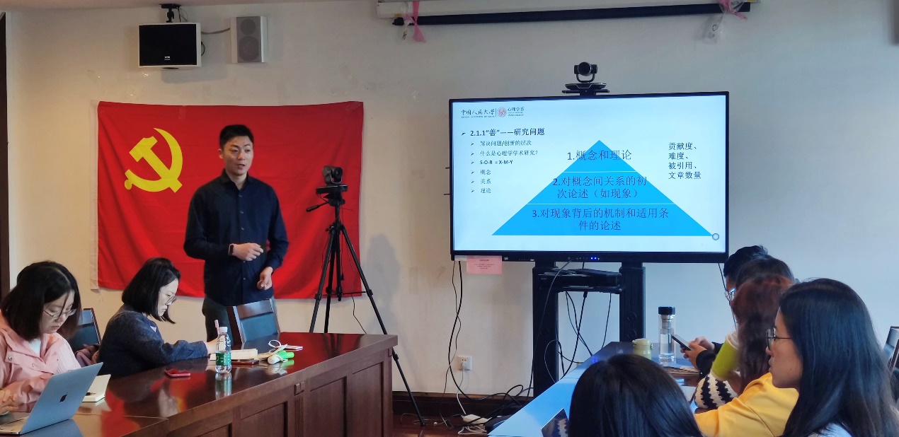心理学系,读博期间累计发表SSCI论文30多篇,其中19篇论文总影响因子近50分,具有丰富的论文写作经验和优秀的科研能力。此次讲座,王鹏程从“真”“善”“美”三个方面阐释了科研写作的要诀,分别强调数据真实、创新有据、写作规范等,介绍了如何从理论及实践出发,进行自上而下和自下而上的选题,提出“长板”原则、增益递减等写作原理给大家以启迪,同时向科研新手们传递了学术论文投稿经验。