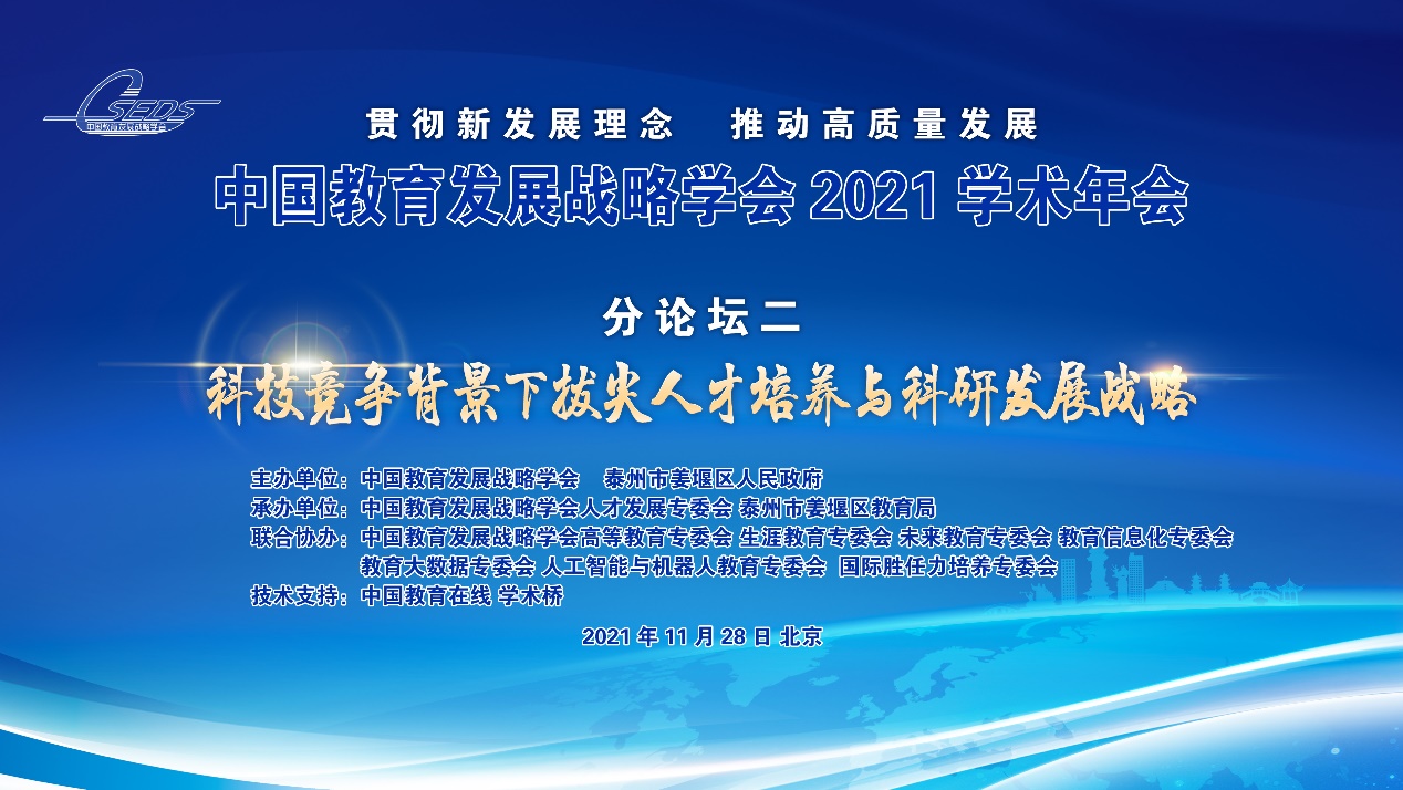 为深入学习习近平新时代中国特色社会主义思想和党的十九届六中全会精神,贯彻落实习近平总书记关于教育的重要论述和全国教育大会精神,面向2035教育现代化远景目标,研讨“十四五”时期教育高质量发展的目标任务,中国教育发展战略学会与泰州市姜堰区人民政府于2021年11月27-28日联合举办中国教育发展战略学会2021年学术年会。