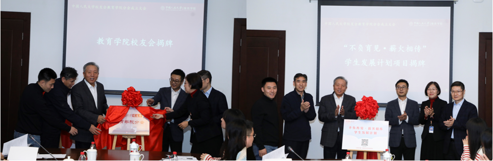 校友会以及“不负育见·薪火相传”学生发展计划项目揭牌。