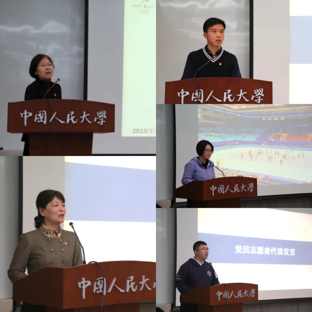 纪红波作总结发言。她表示习近平总书记的重要指示高瞻远瞩、思想深刻、内涵丰富、催人奋进,充分体现了对国家发展和民族复兴的深谋远虑、以人民为中心的爱民情怀、对事业发展规律的深刻把握和求真务实的崇高风范。我们必须以习近平同志重要指示精神统一思想,以志愿者队伍建设为核心,找组织、明思想、强保障,传温暖,全力做好冬奥会志愿服务工作!纪红波勉励在座的党员同志,深入学习习近平总书记系列重要讲话精神,擦亮党员身份,促进奥运精神在人大校园的“青春传达”“青春践行”和“青春传承”。