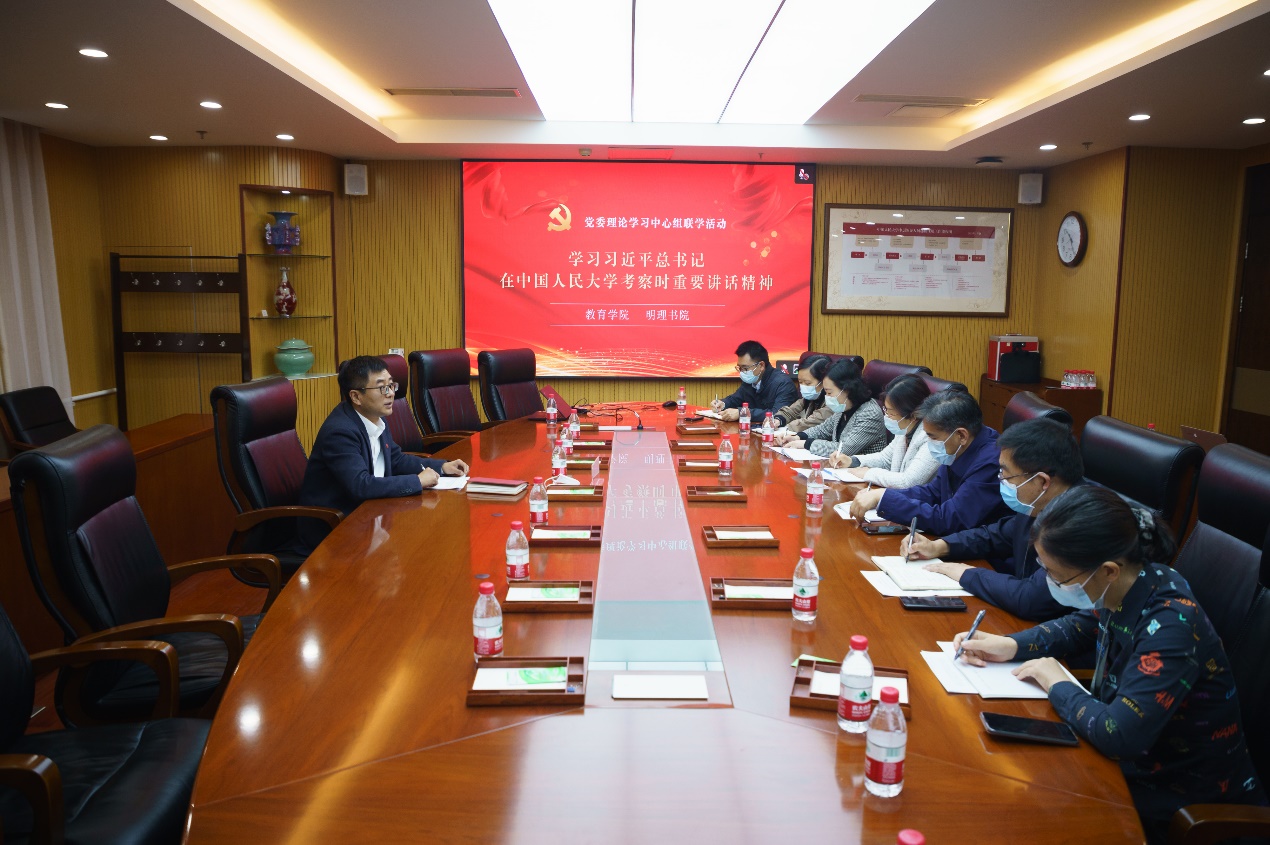 党委书记兼副院长张晓京、院长刘复兴、明理书院直属党支部书记兼副院长安志伟围绕深入学习贯彻习近平总书记在中国人民大学考察时的重要讲话精神先后发言,并交流学习体会。