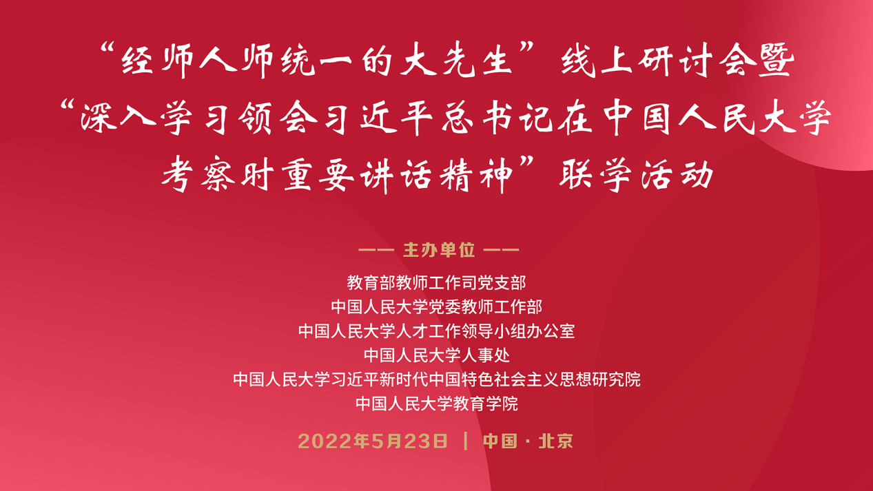 联合举办“经师人师统一的大先生”线上研讨会暨“深入学习领会习近平总书记在中国人民大学考察时重要讲话精神”联学活动,邀请资深专家和领导同志深入展开研讨。