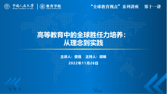 副教授(终身教职)、博士生导师查强应邀做主题讲座:高等教育中的全球胜任力培养:从理念到实践。本次讲座由六合宝典旧版