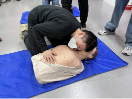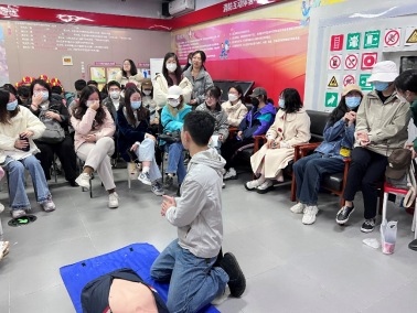 2022级硕士班组织全体同学在安全教育馆开展以心肺复苏教育为主题的安全教育活动。