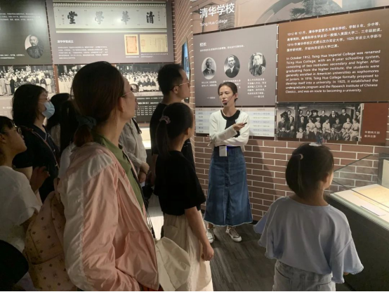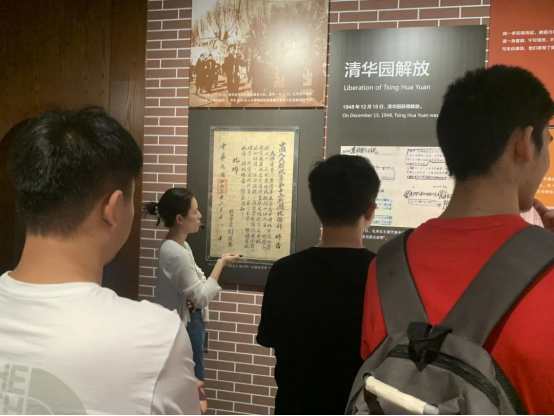 在清华大学校史馆,教院师生跟随着校史馆讲解员的步伐,感受着清华大学百年风雨与丰硕成就。