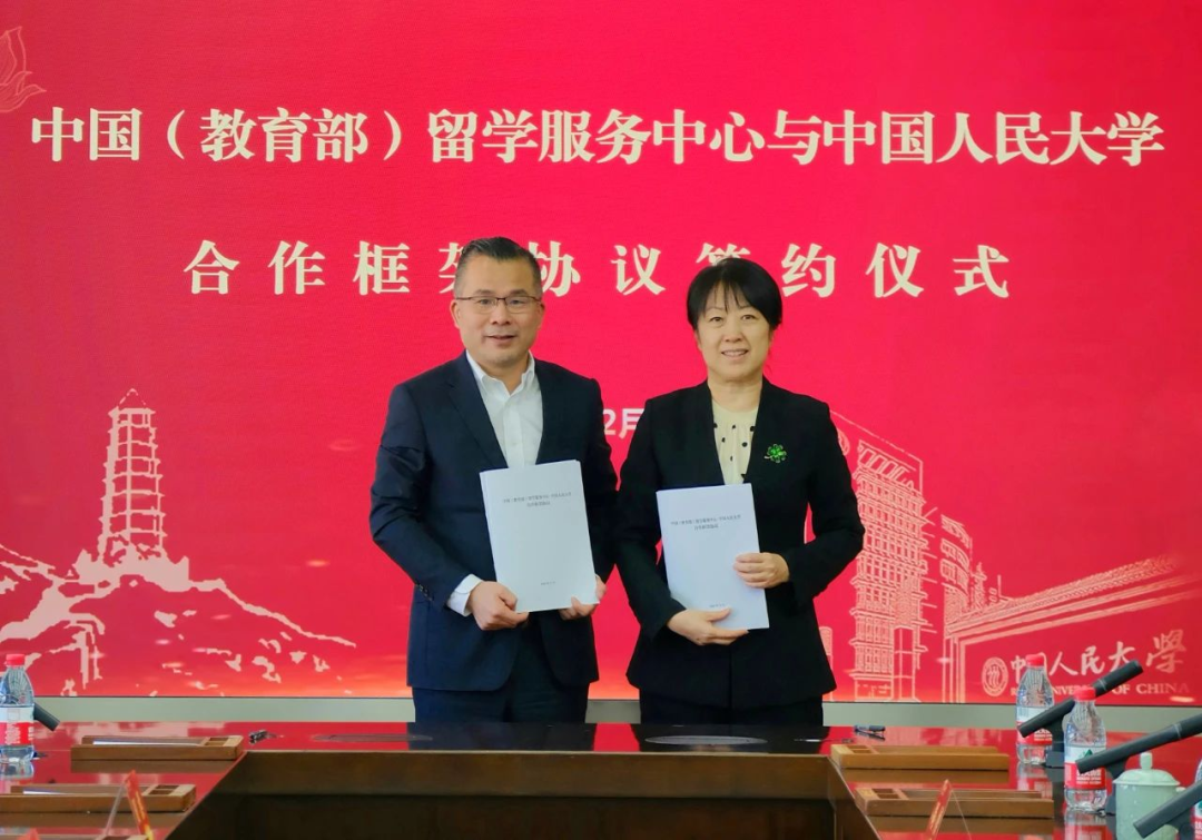 为深入贯彻习近平新时代中国特色社会主义思想和党的二十大精神,全面落实习近平总书记在中央人才工作会议上的重要讲话精神,深入学习贯彻习近平总书记在中国人民大学考察调研时重要讲话精神,加快推进中国人民大学“让党放心、人民满意、世界一流”大学建设,助力世界重要人才中心和创新高地建设,中国人民大学与留服中心本着“优势互补、务求实效、共谋发展、战略共赢”的原则,决定建立战略合作关系,签署战略合作框架协议。双方将充分利用留学服务中心丰富的数据资源和中国人民大学雄厚的学科资源优势,运用人工智能、大数据等新技术在科学研究、人才培养、学科建设等领域开展全面合作。