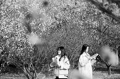 大学生在姹紫嫣红、芬芳四逸的校园里读书。赵启瑞摄/光明图片