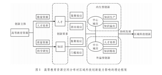 区域创新能力的形成是多因素影响的复杂过程。学者对于区域创新系统、创新能力、影响因素、测度指标体系、融入路径等问题进行了系统研究。学者普遍认为,在区域创新系统中,高等教育资源作为重要创新主体以多种路径对区域创新能力产生显著影响,其直接效应和空间效应共同构成对创新影响的总效用。部分学者对研究型大学、创业型大学与本地创新生态的共生路径进行了探索,认为大学是创新,尤其是知识创新的源头,主要以知识生产和传播,人才培养和在地创业实践路径融入本地创新生态,推动创新能力提升。高等教育资源类型也会对创新效率产生不同影响,即高等教育数量和质量对创新的影响存在异质性,高等教育数量通过人力资本存量间接影响创新活动;高等教育质量则通过科学研究直接影响技术进步。高等教育资源中的人力资源、物力资源和财力资源都对区域创新具有显著正向影响,且人力资源影响最显著。随着区域创新从“地方空间”向“流动空间”转型,高等教育资源对创新能力的空间效应愈发显著。从全国来看,高等教育集聚水平与区域创新能力的空间分布相近,高等教育发达地区的创新能力也更突出。高等教育集聚程度在省级、市级不同空间标尺下对于区域创新能力呈显著正向作用,集聚程度越高,区域创新能力越强。进一步研究发现,本地高校数量和在校生人数对于临近城市的创新能力存在溢出效应和竞争效应,高校人力资源集聚对城市不同层次的创新能力影响也不相同,不同高等教育资源空间结构对于城市群创新能力作用存在差异。