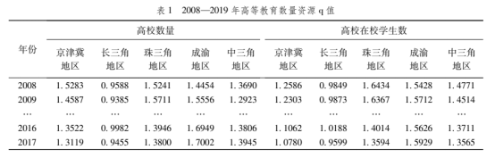 五大城市群在高等教育资源空间布局总体一致,质量资源均呈现出“高集聚-单中心”格局,数量资源分布相对均衡,但除长三角地区外也处于单中心状态。实证还表明,城市自身创新禀赋对人才和知识等要素流动产生影响,进而影响区域创新能力形成。