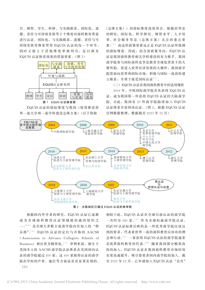 均通过参与该认证体系来保障和提升商科教育质量。结合国际前沿的商科教育质量管理理论和EQUIS认证的质量指标维度,建构中国特色商科教育质量管理体系是我国商科教育发展的一个核心目标。高质量发展和立德树人是我国商科教育质量管理的政治论基础,内外部利益相关者协同治理是商科教育质量管理的重要抓手,质量文化建设是商科教育质量管理的关键要素。